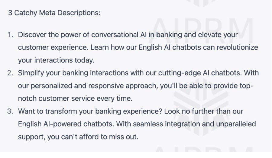 Our objective here is to create a post (or several) about “conversational AI in banking” for BanksRus.